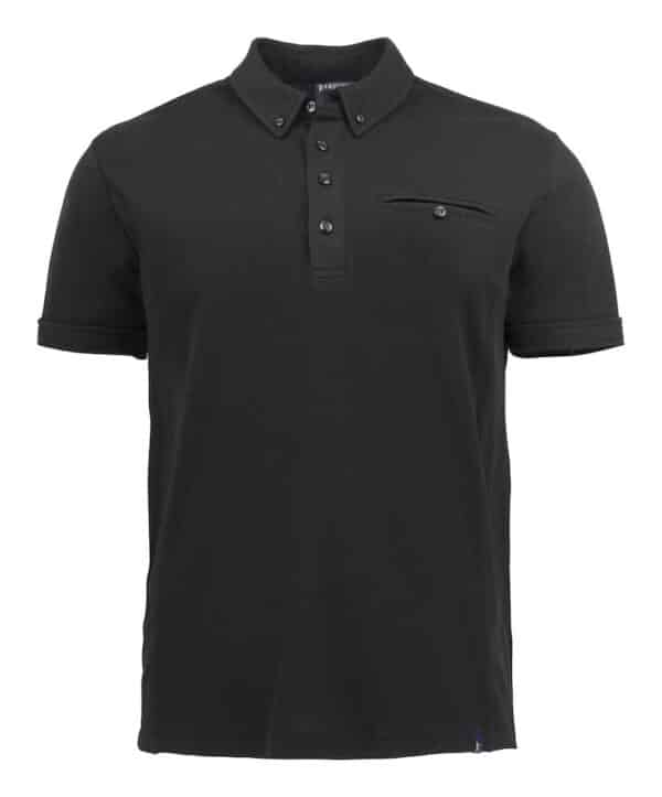Moderne poloshirt. Met zijsplittten, zijpanelen in Jaquard en kraag in glad breisel. De herenversie heeft een buttondown, borstzakje met knoopje en een vierknoopsluiting. De stof is nabehandeld met een enzyme wash, waardoor het materiaal voorgekrompen is en zacht aanvoelt. Leverbaar in dames en heren model.