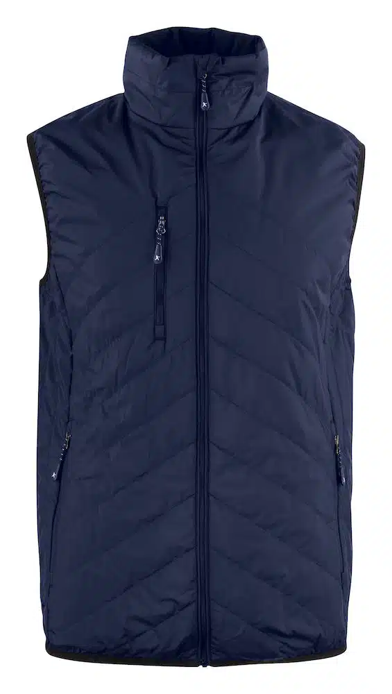 Bodywarmer jas. Gequilte vest met Thermolite Micro. Volledig gevoerd en omgekeerde ritssluitingen. Elastische band aan de zoom onderaan en de mouwopening. Overal mee te nemen doordat je de vest kan bijeenvouwen en wegsteken in de voorzak. Leverbaar in dames en heren model.
