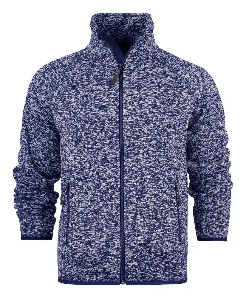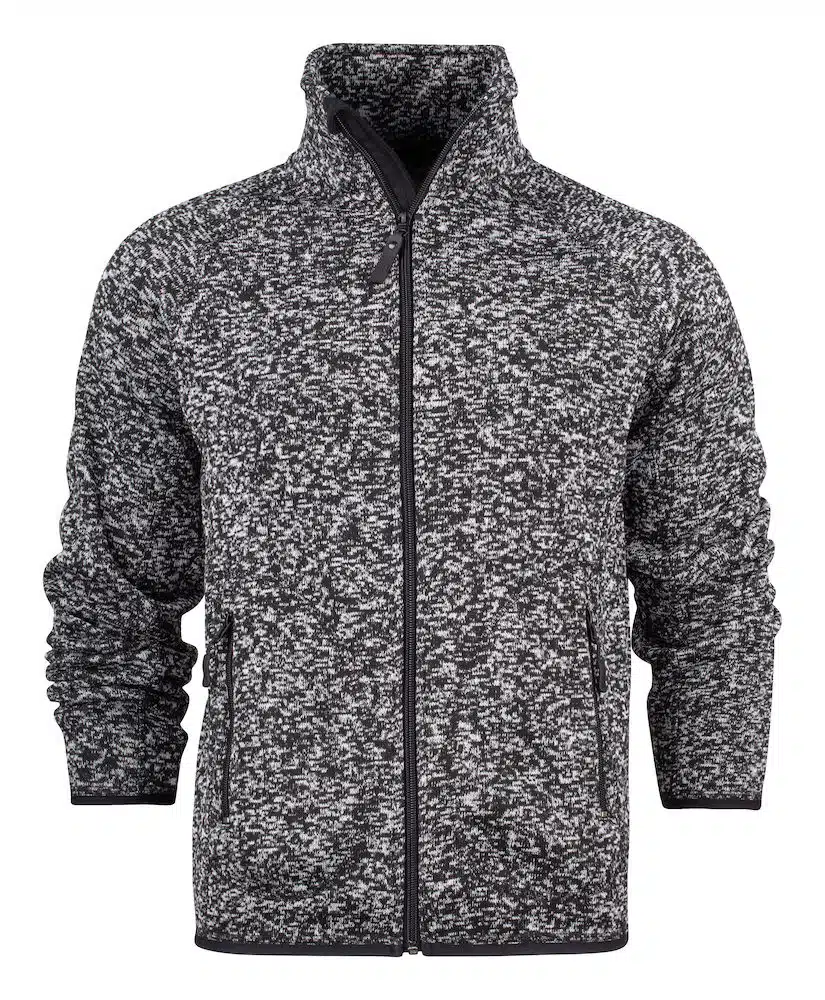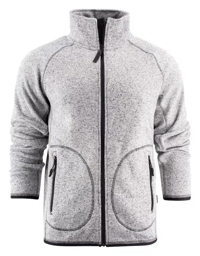 Gebreid fleecejas. Met mêlée effect, de binnenzijde is geborsteld. Contrasterende ritssluitingen en flatlock naden. Voorzakken met ritssluiting en elastische zoom aan de manchetten en onderaan de zoom. Leverbaar in dames en heren model.