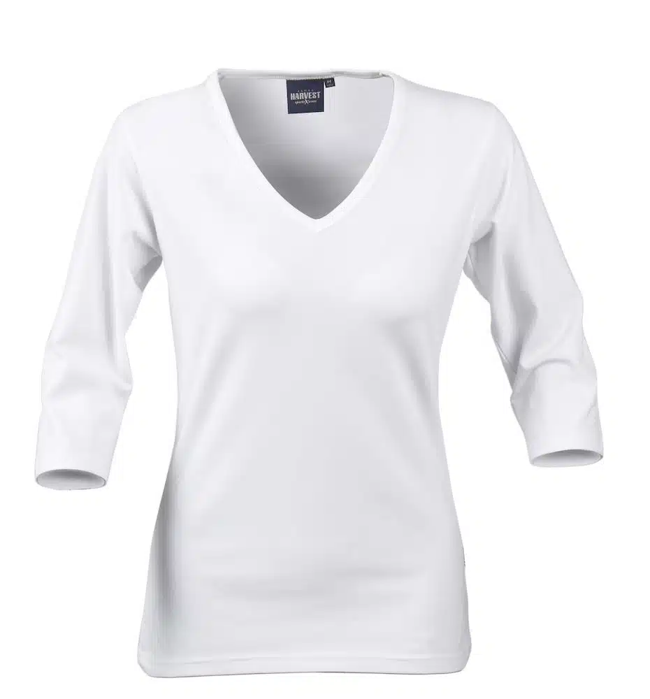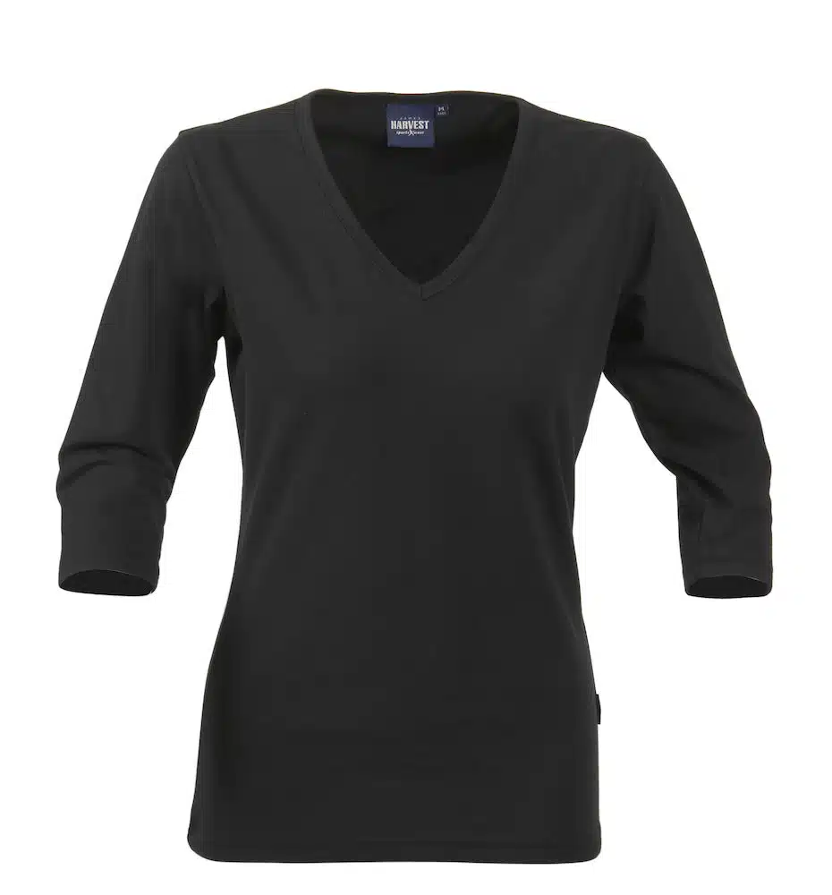 Moderne nauwaansluitend dames top. Met V- hals en ¾ mouw.